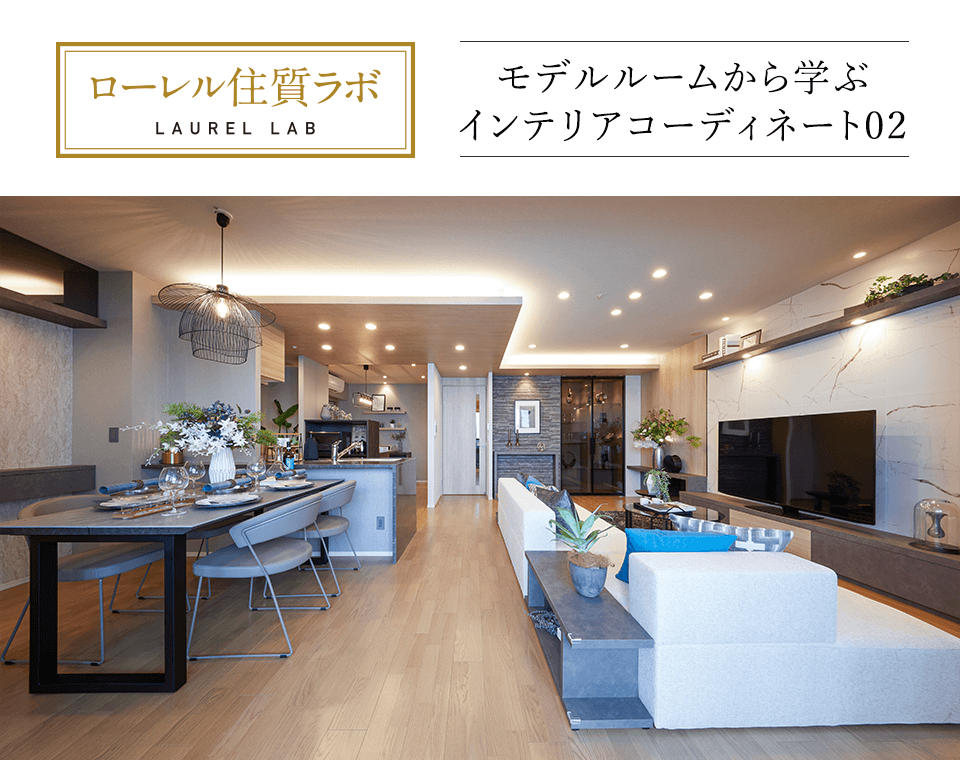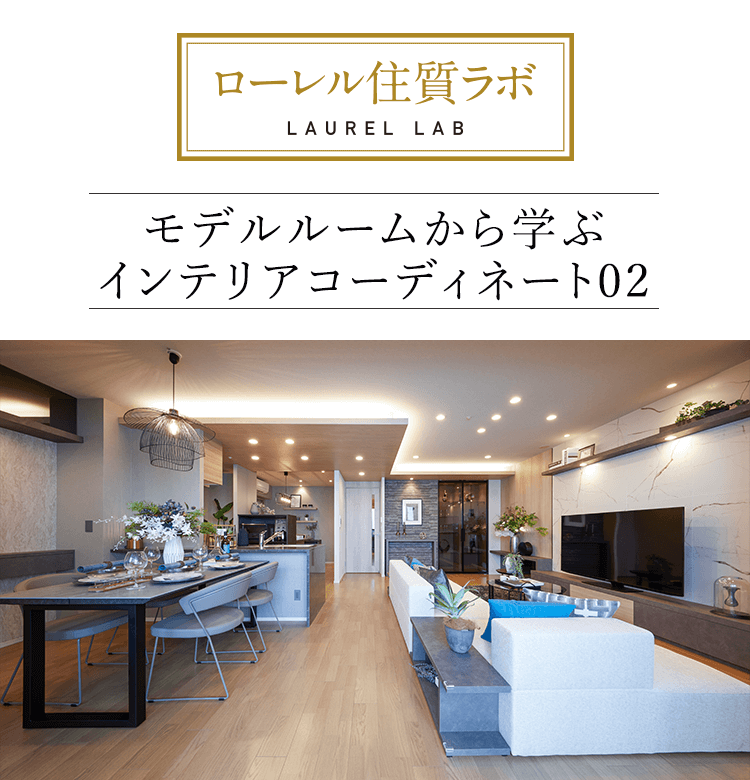 「ローレル」マンションシリーズのモデルルームでは、インテリアコーディネーターがこだわった、心地よく素敵な空間を体験することができます。コーディネートをひもときながら、居心地のよいインテリアのヒントを探ります。