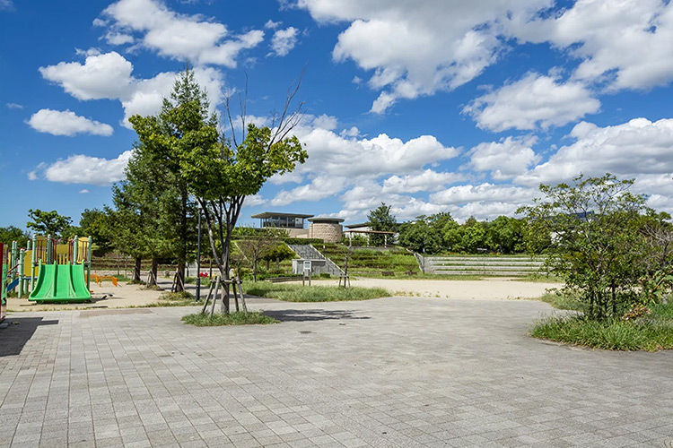 大阪市立クラフトパーク東側に隣接する広々とした公園。盆踊りなど地域のイベントも開催されています。