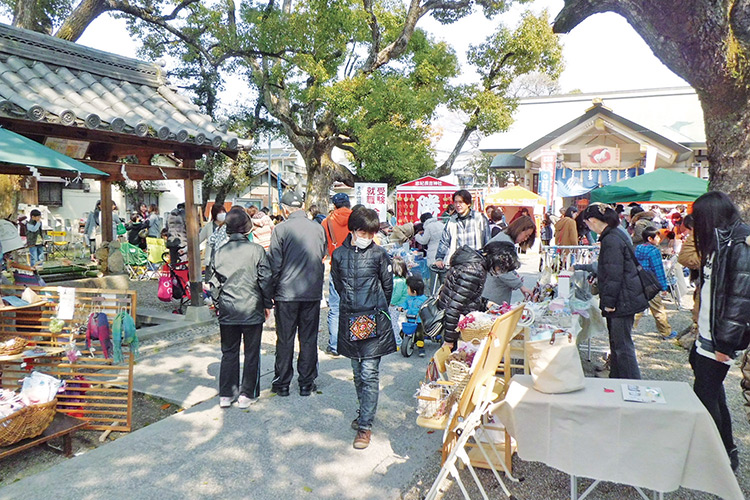 志紀長吉神社の境内では、手作り市が不定期で開催されています。アクセサリーや雑貨、クッキーなどハンドメイド品が並び、毎回多くの人が訪れます。