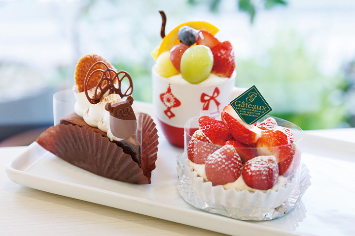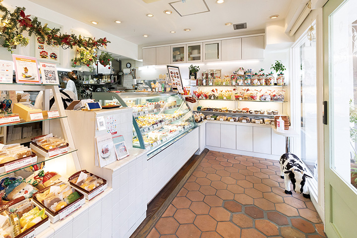 1988年創業の地元に愛されるスイーツの名店。防腐剤不使用で、本物のフレッシュ生クリームを使うなど、厳選した素材とオリジナルの製法にこだわった作り立てのケーキが常時20種ほど並びます。ショーケースを彩る旬のフルーツをふんだんに使った華やかなケーキのほかに、生のオレンジの果汁をたっぷり使い、皮のすりおろしをいれて香りを引き立たせたパウンドケーキ「オランジェ」や季節限定のロールケーキも販売。素材本来の風味を生かした焼菓子も人気で、ひとつずつ手包みするパイもおすすめです。また、贈り物にも最適な可愛いギフトラッピングは、バレンタインやハロウィンなど季節限定のものもそろいます。