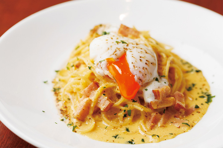 [料]カルボナーラ 温玉のせ1,078円、レディースランチセット1,450円