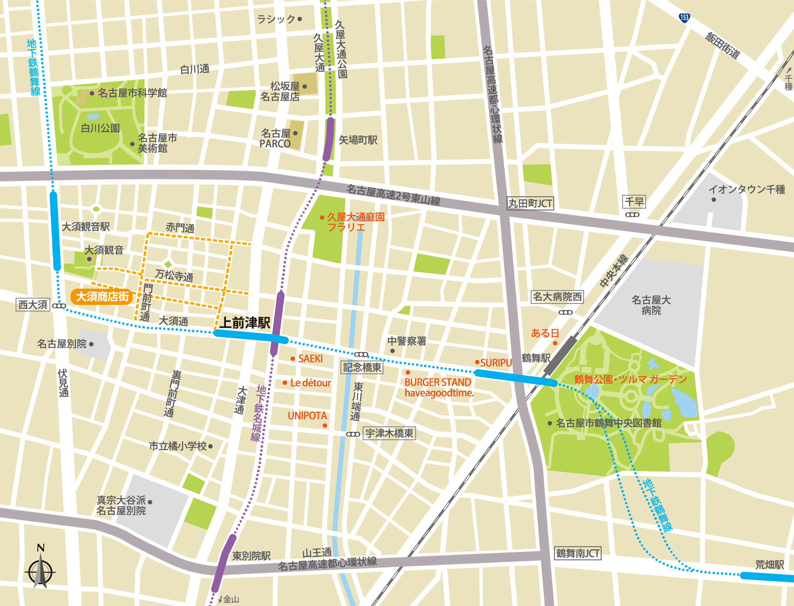 地下鉄名城線・鶴舞線が交差する「上前津」駅周辺は、都心に寄り添う立地ながら閑静な住環境が整い、隠れ家的なレストランも点在。再開発が進む栄をはじめ、賑わいを見せる大須や自然の潤いを満喫できる鶴舞にも隣接し、暮らしの愉しみ方もさまざま。そんな上前津の魅力をご紹介していきます。