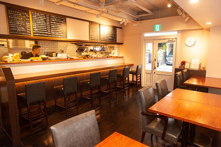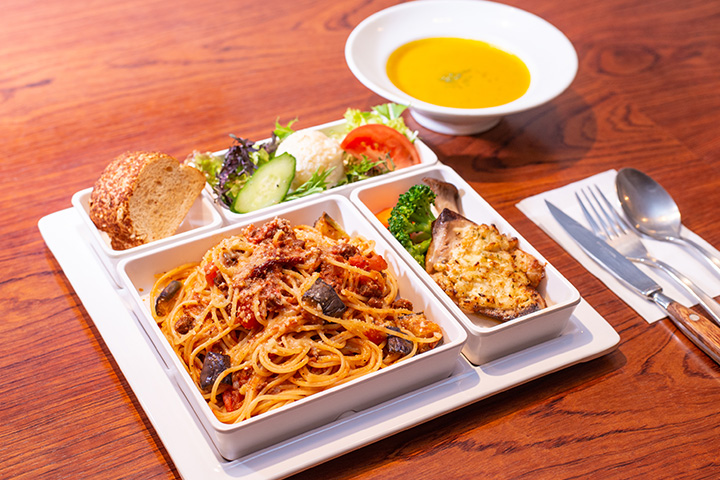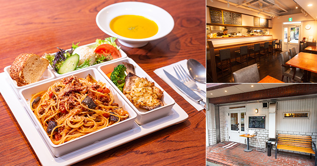 店主の佐伯さんは、イタリアの港町のレストランで修業。この経験をもとに、旬の海鮮や野菜を使った料理を自慢とする当店をオープン。「心得は、食材の味わいを活かすこと。基本の調味料を使ってシンプルな味つけにしています」と、佐伯さんは話します。ディナータイムは、鮮魚のカルパッチョをはじめ、豊富なメニューを用意。ソムリエが常駐しており、各料理にマッチするワインを提案してくれるのも、うれしいところです。また、「子どもが食べられるメニューを」といった要望にも、柔軟に対応しているそう。ランチタイムの主なメニューは、パスタやメインディッシュなどが味わえるワンプレートランチ。無料で大盛りにもできます。