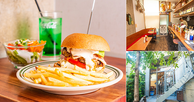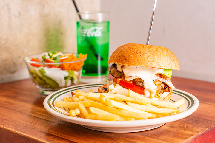 2020年に誕生したハンバーガー専門店。店舗の入り口は建物の奥にあり、隠れ家感も楽しめます。現在、ラインナップされているハンバーガーは25種類ほど。パティやレタス、トマトなどで構成されたスタンダードな一品から、大きなフライドチキンを挟んだ変わり種まで、多様なハンバーガーが用意されています。当店のハンバーガーの主な特徴は、ビーフ100%のパティと全粒粉のバンズ。絶妙な食感のパティに仕上げるため、挽き方が異なる2種類のミンチを混ぜています。また、程よい歯ごたえと香ばしさが楽しめるよう、全粒粉のバンズも使用。トッピングも数多く用意されているので、さらに好みのハンバーガーにアレンジできます。