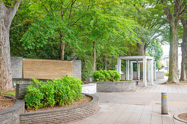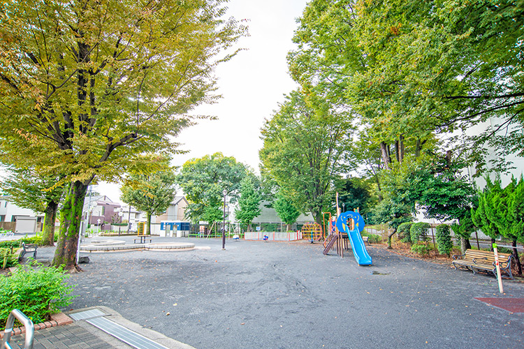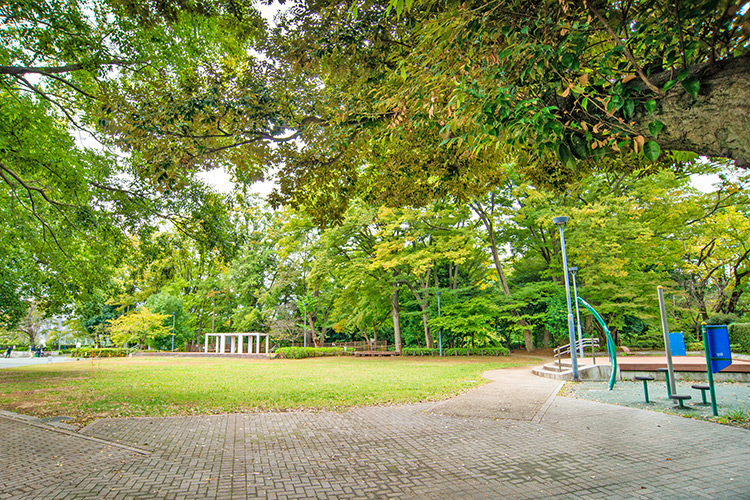 上北沢2丁目にある、開放感あふれる公園。広々とした芝生に健康器具が設置されています。また、都立松沢病院敷地内の将軍池を眺めることができるデッキが設けられ、季節の移ろいを感じながらゆったり過ごすことができます。