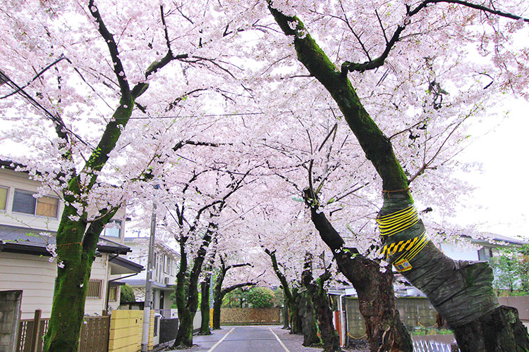 「上北沢」駅東側の踏切から見える美しい桜のトンネルはこの街のシンボル的な存在で、せたがや百景にも選定。一直線にわたって植えられた約50本もの桜を愉しむことができます。桜並木は昭和初期の宅地開発により植えられ、区や地域の方々によって大切に守られています。