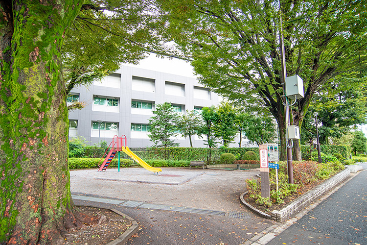 東京都医学総合研究所の傍らにある、こぢんまりとした公園。滑り台と砂場があり、小さなお子さんを遊ばせやすい雰囲気。