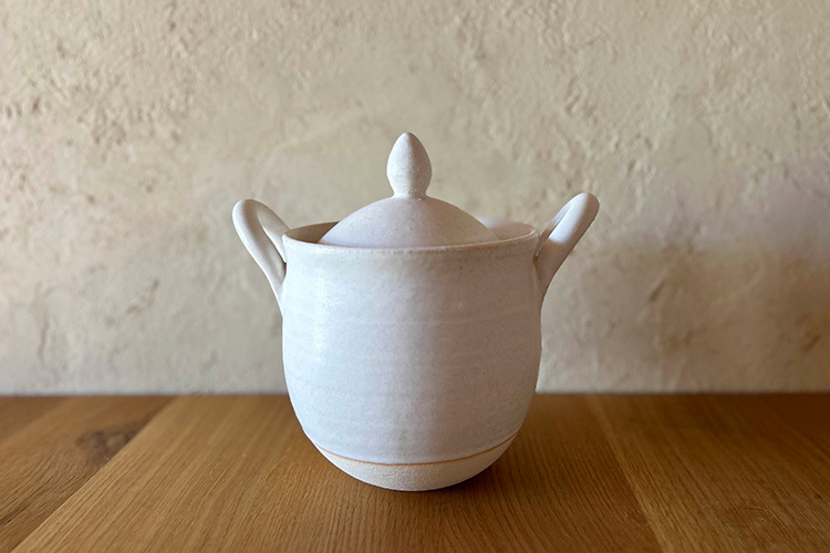 福岡県で作陶されている水谷ちえみさんの小さめの土鍋。コロンとしたフォルムの絶妙なデザイン、マットな質感に加え、温かみのあるアイボリーが素朴さと洗練を兼ね備えていて、その姿に一目惚れして購入しました。子どもが独立した後、1〜2人用の味噌汁や寄せ鍋、スープやシチュー作りに大活躍。ご飯を炊いたり、煮物にも使えて、とっても機能的です。