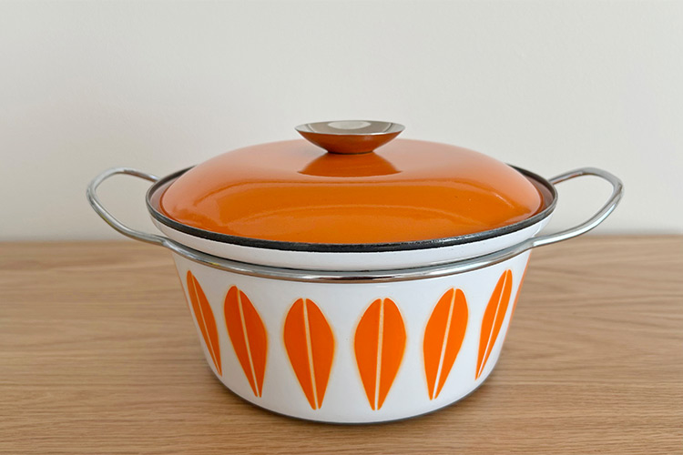 北欧らしいシンプルで美しいデザインが素敵なキャサリンホルムのホーロー鍋。熱をじんわり伝えてくれるので、煮込み料理も優しい味に仕上がります。長年大切に使われ続け、私の手元にやって来たこの鍋は出しっぱなしにしていても絵になる佇まい。これから先も、ずっと大切に使っていきたいと思えるお気に入りの相棒です。